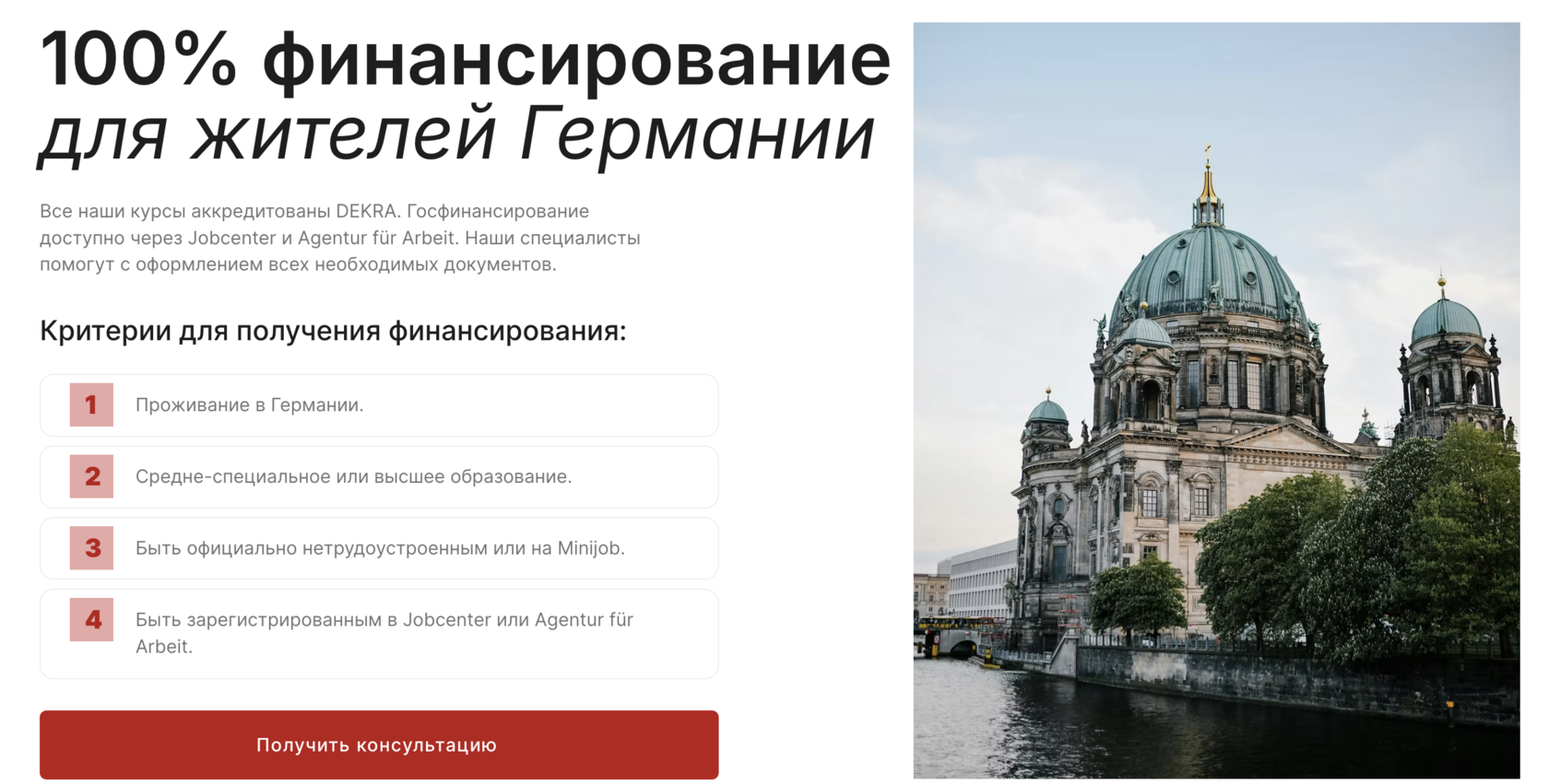 Для жителей Германии до 100% финансирование от государства