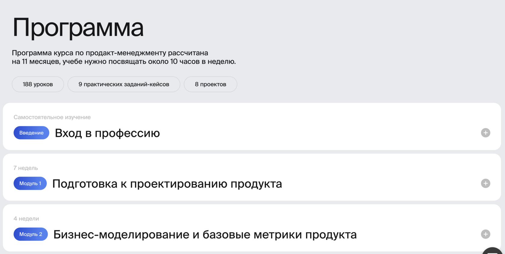 Во время обучения вы создадите проект – часть работающего сайта, приложение, модуль интернет-магазина или другой проект, который может быть социальным или коммерческим.